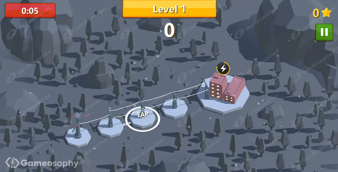 Control: Simply tap on a power line to rotate it, aligning it correctly under electric voltage.