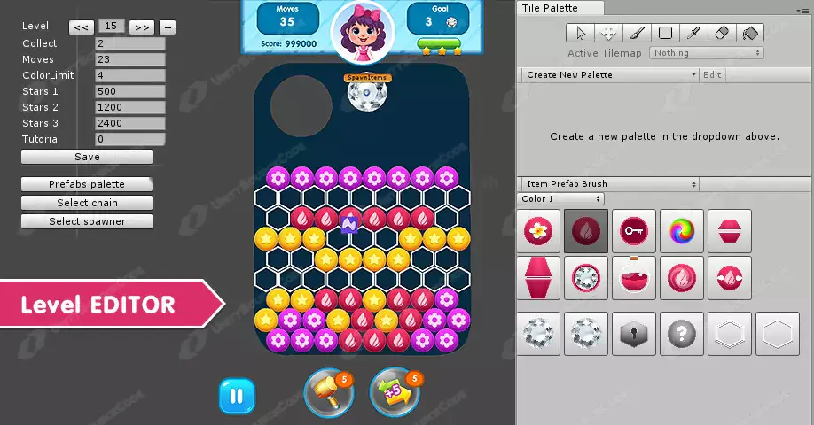 Match 3 Kit Jewelry is a unique match 3 complete project for Unity + EDITOR.