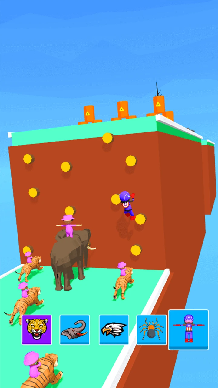 Animal Shift Race is a fun animal-theme racing game where players tap to transform into different animals like elephants, tigers, sharks, birds, and more to win wild races. A complete Unity project includes full source code and is easy to reskin, making it perfect for building your next mobile game.