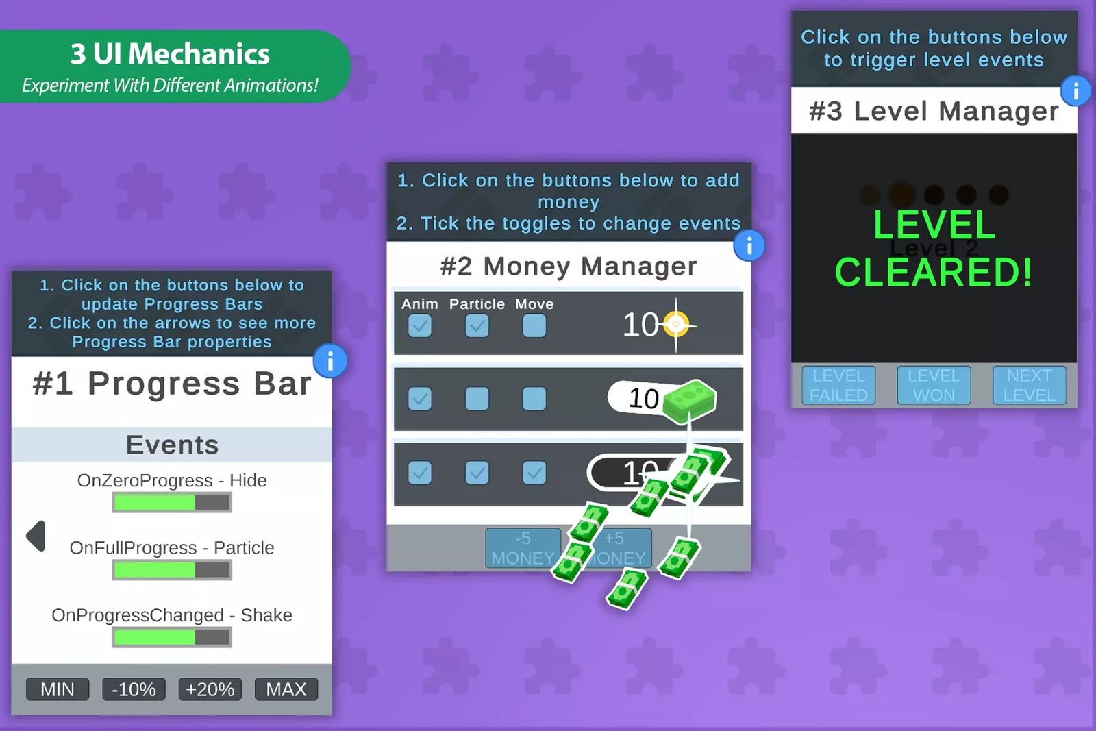 Complete game toolkits: This pack comes with all the tools you need to develop, design, build, and publish hit puzzle games without hassle.