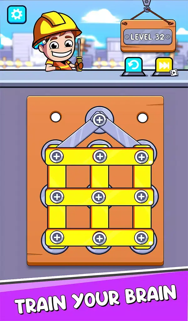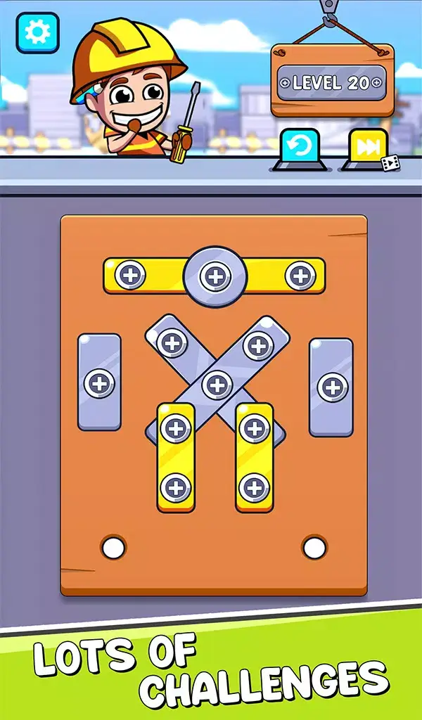 A mechanical logic puzzle focused on unscrewing nuts, pins, and bolts in the correct sequence