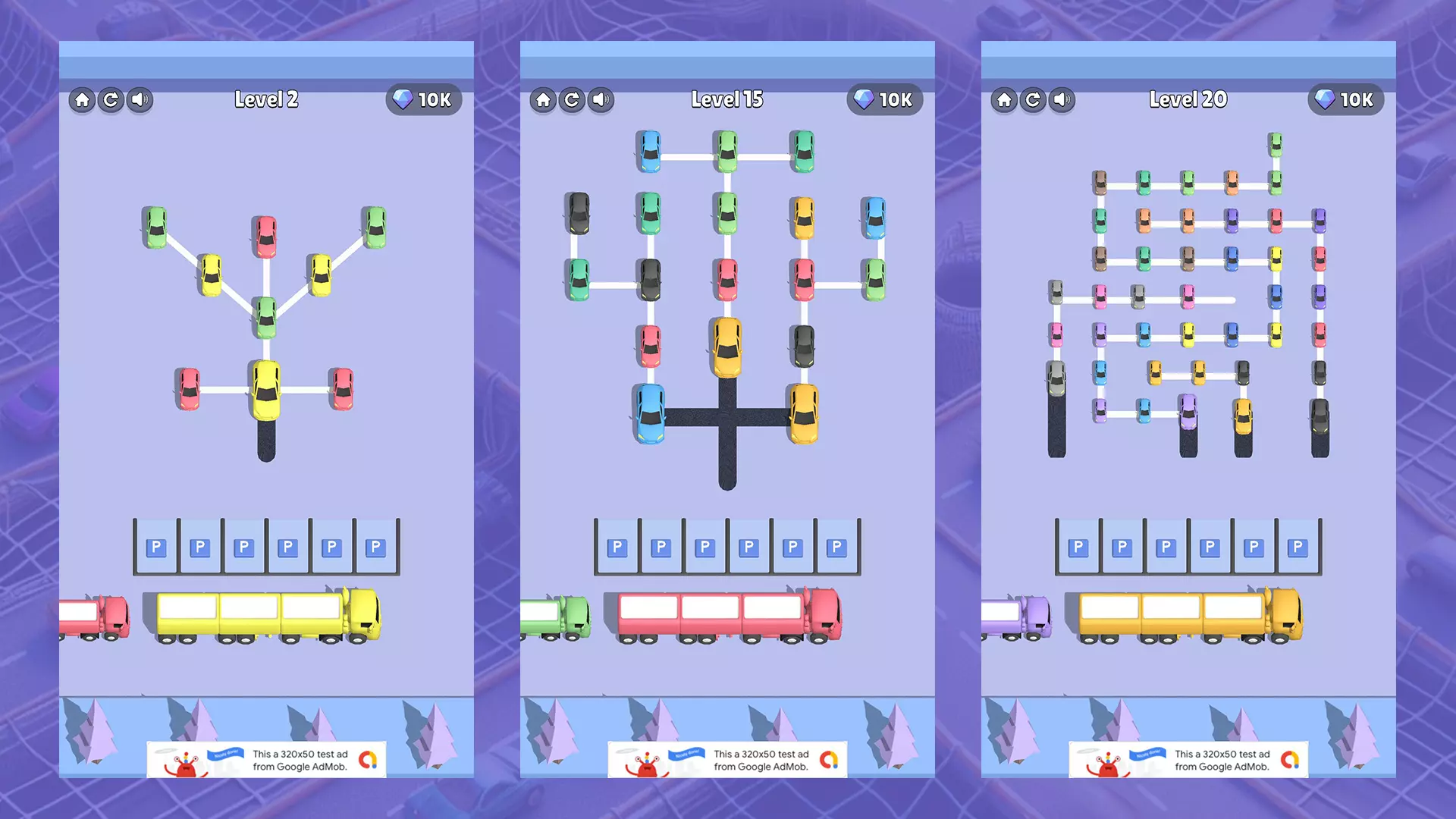Colorful Vehicles: Guide different colored vehicles through challenging puzzles.