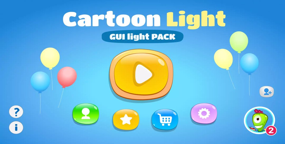 Cartoon Light-GUI Light pack is a bright and cartoon theme game UI kit, compatible for both mobile and PC (1920*1080 and scalable sizes). Comes with customizable SVG files and a wide variety of elements. This game UI pack helps you to create a fun and professional interface quickly and effortlessly.