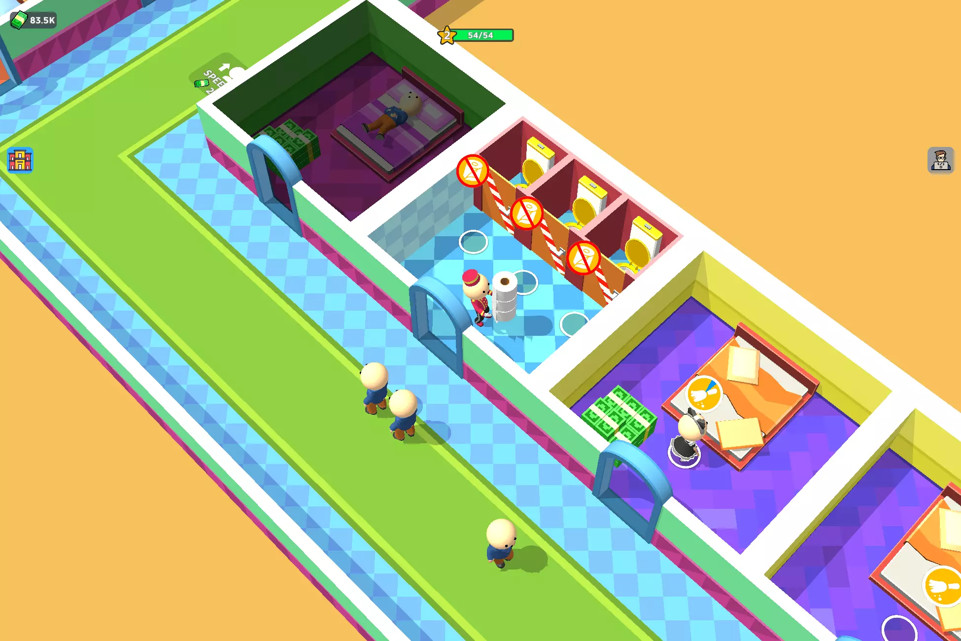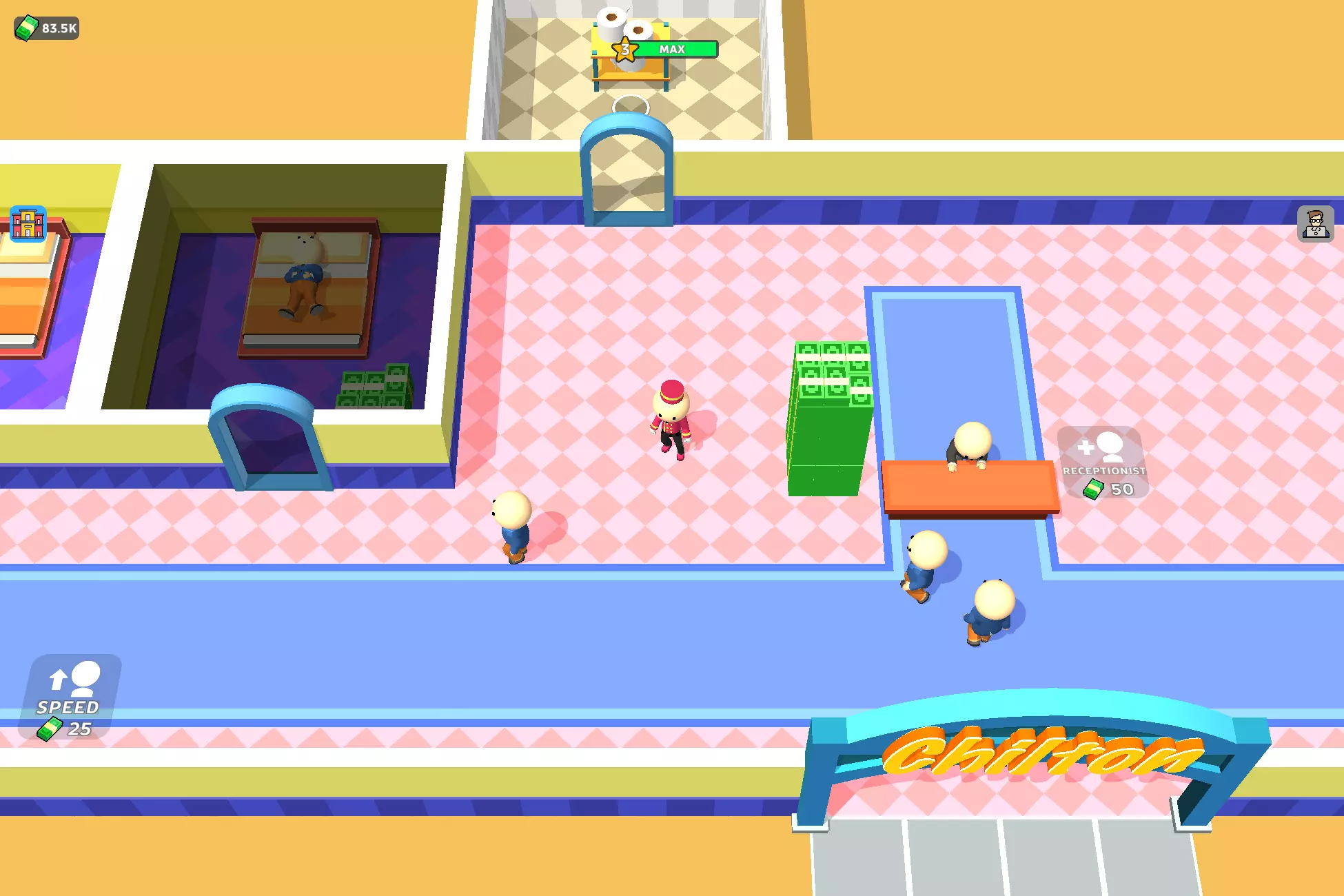 Unlock staff using coins and manage them. ๐ช