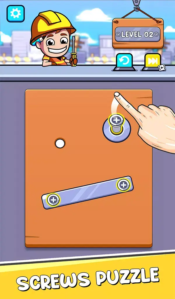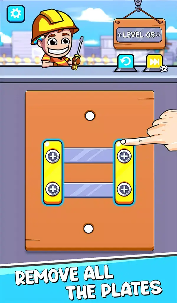 A mechanical logic puzzle focused on unscrewing nuts, pins, and bolts in the correct sequence
